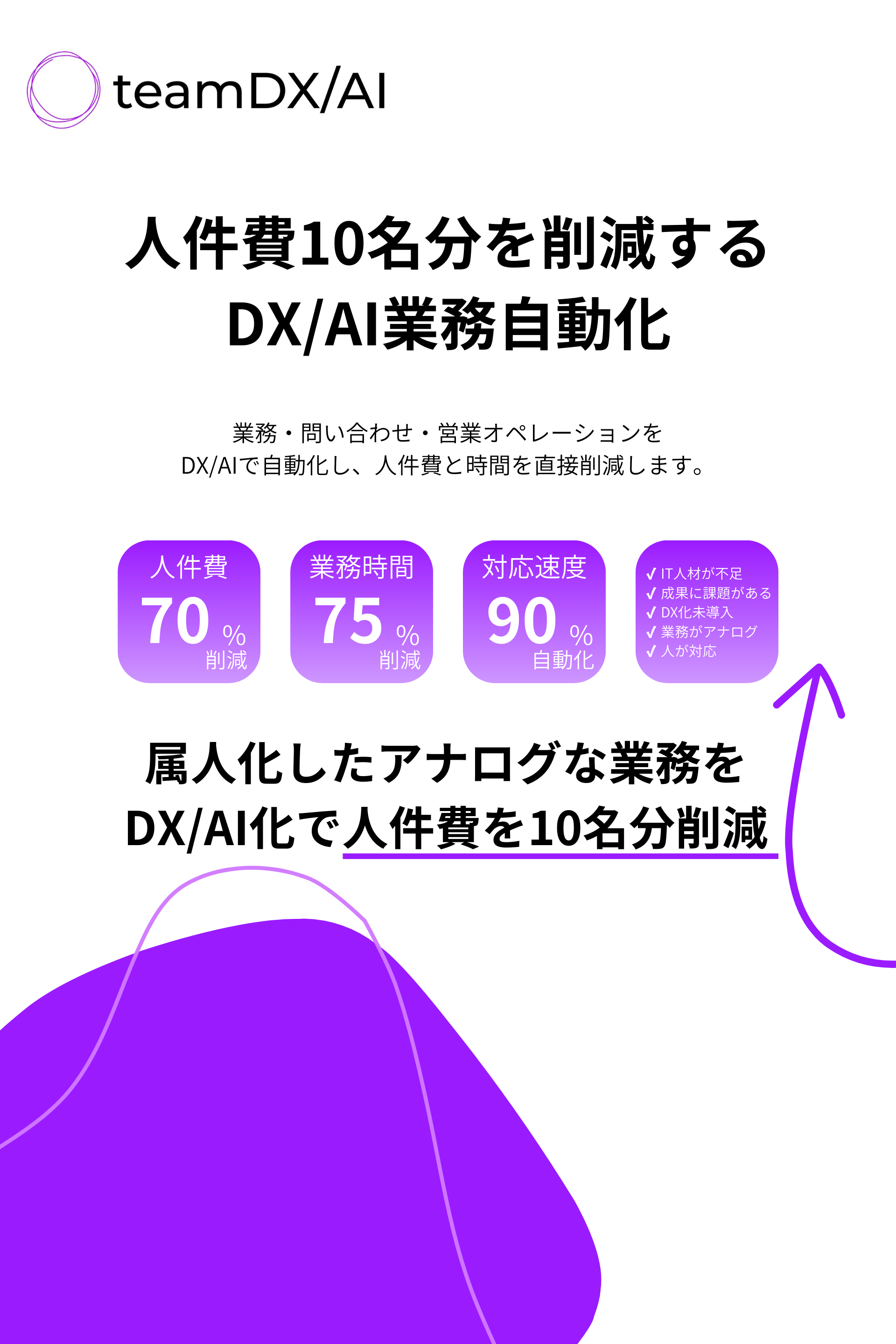 「DX」「AI」ではなく、具体的な人件費削減額とROIを数字で提示します。